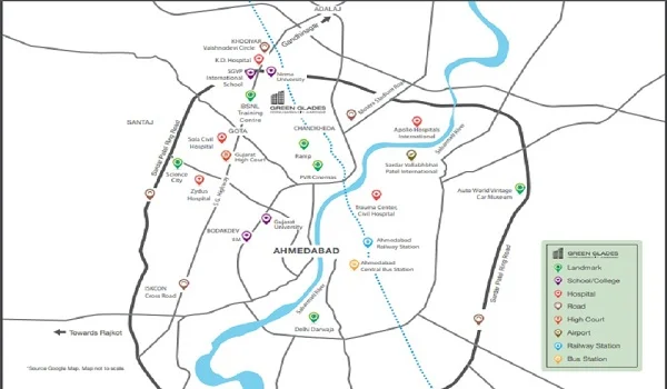 Godrej Green Glades enjoys a prime setting in Krishnadham Tenement, Chandkheda—part of the thriving Jagatpur region in North Ahmedabad. This residential zone is quickly emerging as one of the city’s most well-connected and sought-after localities. The Godrej Green Glades location offers residents seamless access to several key hubs, including Chandkheda, Devnagar, Adalaj, Khodiyar, and Motera, all located within easy driving distance. The project is well-linked via major arteries such as Jagatpur Road, which directly connects to the Sarkhej–Gandhinagar Highway, and is further complemented by NH-147 and Malabar County Road, enhancing intra-city and intercity mobility. For daily commuting and business travel, Chandkheda Railway Station is just about 3 kilometers away via Jagatpur Road, while Sardar Vallabhbhai Patel International Airport lies approximately 19 kilometers away through the Sardar Patel Ring Road. Additionally, proximity to Navratna Business Park and other commercial establishments makes this location ideal for professionals seeking both lifestyle and connectivity without compromise. It also attracts buyers looking for apartments near Sardar Patel Ring Road and 2 BHK apartments near Chandkheda.