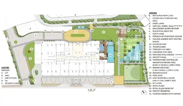 Godrej River Crest is master-planned over 1.82 acres in the prime Kharadi micro-market, with strong emphasis on visual openness and lifestyle zoning. More than 80% of the site area is preserved for landscaped greens, pedestrian promenades, and lifestyle spaces, while construction is restricted below 20%, creating a rare low-density environment within Pune’s premium residential belt. The layout features only 208 apartments across two sleek towers, ensuring privacy and exclusivity for residents. Internal driveways, a structured entrance boulevard, pedestrian movement corridors, and zoned amenity areas allow seamless movement across recreational and residential spaces. Designed with global architectural standards, the master plan emphasizes natural ventilation, daylight penetration, and unrestricted views, aligning it with premium expectations for Pune luxury housing developments and modern gated community in Kharadi.